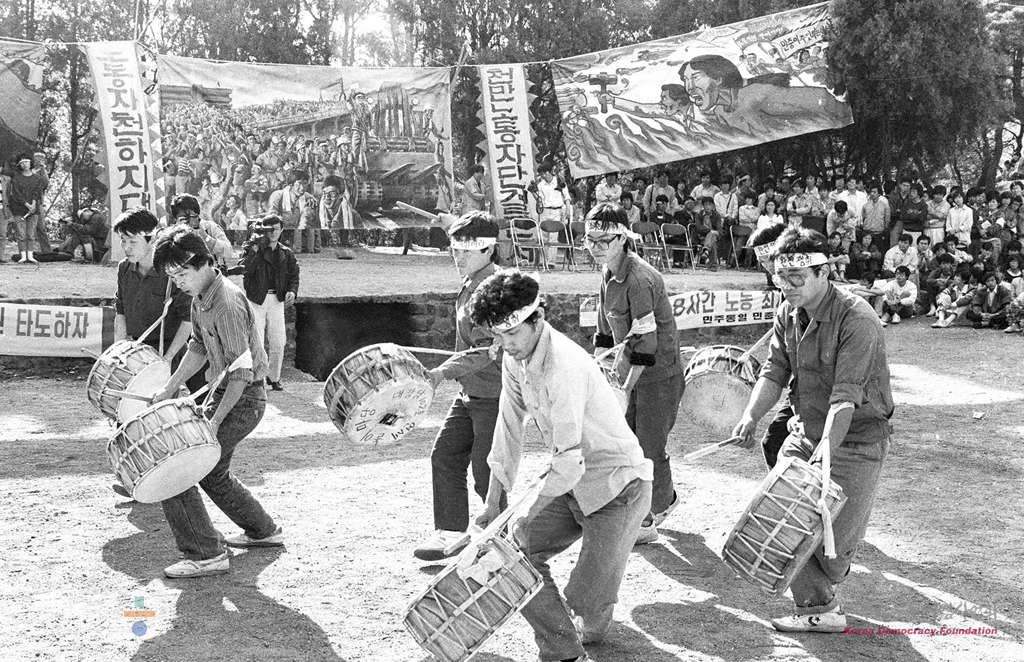 - 1988년 5월 1일 서울시내 대학생과 재야노동단체회원 및 노동자 6천여명이 참석한 가운데 서울 연세대 노천극장에서 서계노동자의 날 기념 노동 3권 쟁취 수도권노동자대회를 갖고 있다.