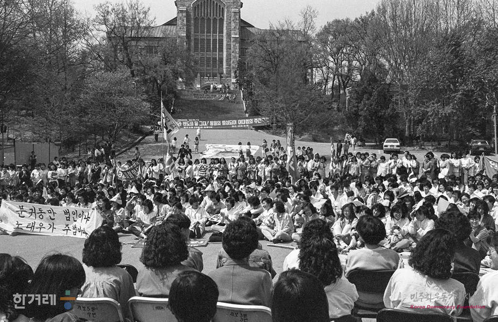 - 1988년 4월 29일 오후1시 제2대 여대협발족식이 서울 서대문구 대현동 이화여대 이화광장에서 열려 참가자들이 검찰의 공권력에 의한 여대생성추행 고소고발에 대한 무혐의처리를 규탄하고 있다.