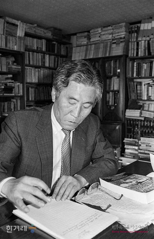 - 1988년 5월 이영희 한양대교수가 서울 성동구 사근동 한양대학교 자신의 연구실에서 국제 정세의 바른 이해를 위한 제언과 관련 글을 쓰고 있다.