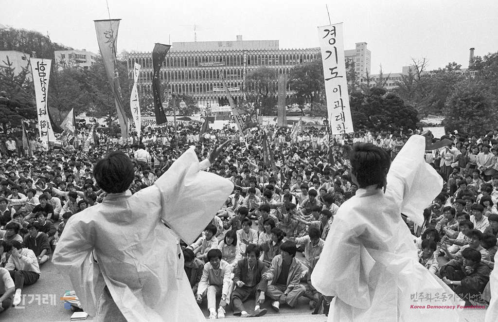 - 1988년 5월 11일 연세대학교 5월축제 개막행사인 대동개막제 행사에 각 대학별로 북한 각 시도를 붙인 대형 깃발을 만들고 각도를 상징하는 노래자랑을 펼치고 있다.