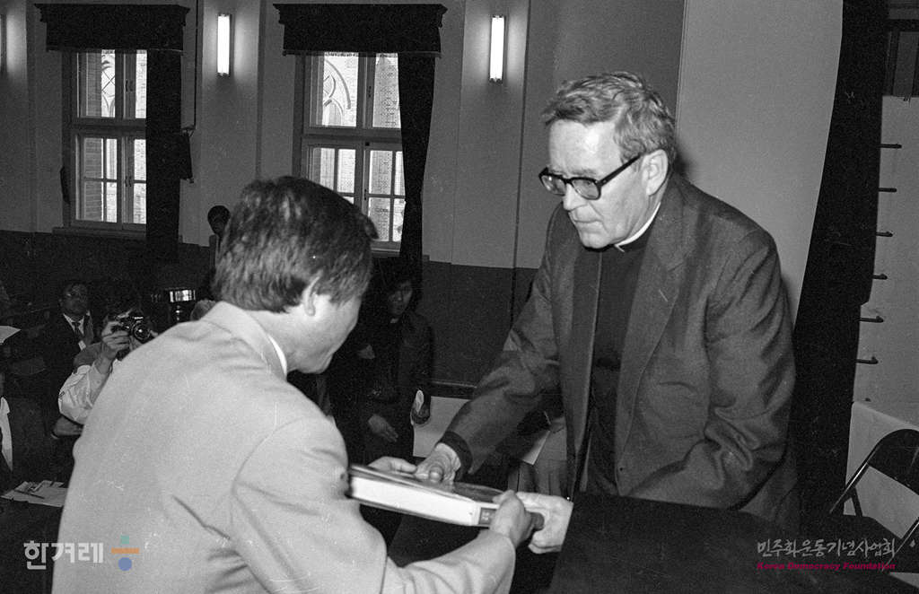 - 1988년 5월 12일 1987년 천주교에서 주관한 자유 언론상의 정신을 이어받아 인간 보편의 가치를 담아낸 언론이나 보도내용에 수여하는 카톨릭 언론상 시상식이 카톨릭회관에서 열려 김수환 추기경을 비롯한 카톨릭 관계자들과 수상자인 김태홍, 최장학씨를 비롯한 보도지침 보도에 수고했던 관련자들이 참석하고 있다.