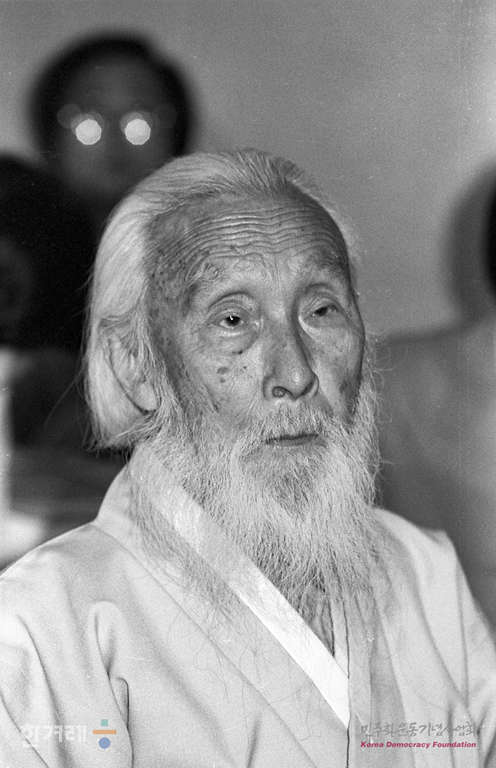 - 1988년 5월 11일 함석헌 선생을 비롯한 재야 원로들이 서울 YMCA레스토랑에서 올림픽 남북공동개최 설명을 발표하고 있다.