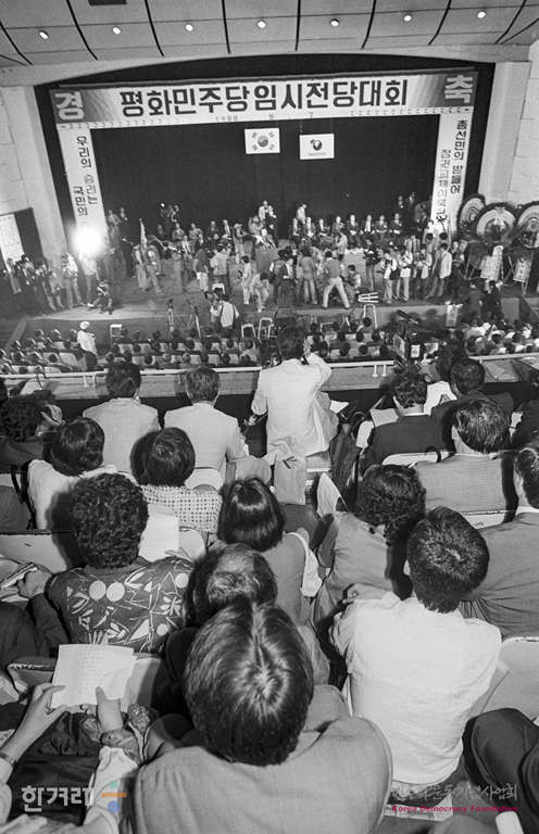 - 1988년 5월 7일 평화민주당 임시전당대회가 서울 세종문화회관 별관에서 열려 단일지도체제 당헌을 채택하고 있다. 이날 전당대회장에서 51일만에 김대중 총재를 재추대했다.
