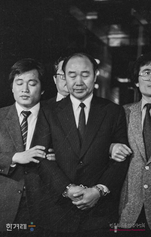 - 1988년 3월 31일 오전 2시15분 새마을운동중앙본부 전 전경환회장이 서울 서소문 검찰청사에서 특정경제범죄가중처벌법 특정범죄가중처벌법중 알선수죄 및 탈세, 공유수면매립법, 도시계획법, 건축법위반 등 6개 죄목이 적용되어 구속되어 서울구치소로 향하고 있다.