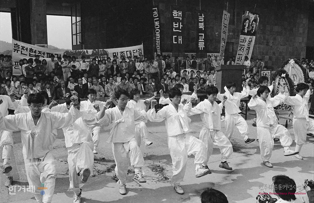 - 1988년 4월 28일 오후1시 서울대 연세대 고려대 등 서울시내 10여개대 대학생 1천 5백여명이 서울대 아크로폴리스광장에서 지난 86년 전방입소반대시위당시 분신자살한 서울대생 김세진 이재호열사의 2주기 추도식을 갖고 추모사업회를 발족시키고 있다.