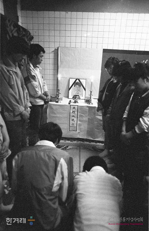 - 1988년 5월 15일 양심수 전원석방과 조국통일을 외치며 서울 중구 명동성당 구내 카톨릭교육관 3층 옥상에서칼로 배를 찌르고 12m아래로 투신해 사망한 카톨릭 민속연구회장 조성만씨가 안치중인 서울 백병원 영안실을 찾은 방문객들이 조문을 하고 있다.