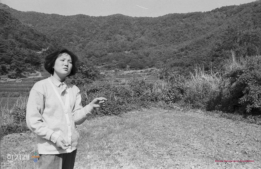 - 1988년 5월 15일 80년 5월 213일 오후 광주시 월남동 앞길에서 버스에 탄 시민17명이 공수특전사 요원들의 총격으로 몰살당했을 때 유일하게 살아 남았던 홍금숙씨가 당시 이 지역에 주둔했던 전 공수특전사 요원 김모씨와 8년전의 비극의 골짜기를 찾아 현장을 둘어보고 있다.