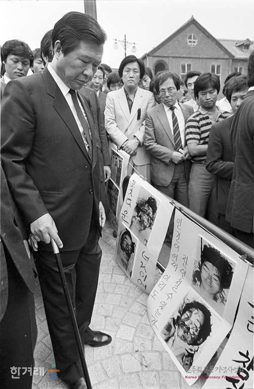 - 1988년 5월 16일 명동성당에 고 조성만열사의 옥외분향소가 마련되어 김대중 총재를 비롯한 시민들이 분향을 하고 있다.