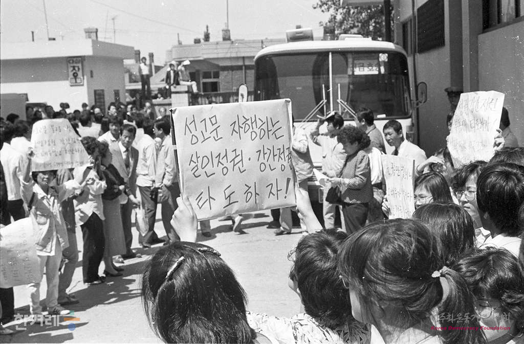 - 1988년 5월 17일 오전 9시 30분 독직폭행과 준강제추행혐의로 구속기소된 문귀동 피고인에 대한 첫공판이 열린 인천지방법원에 일반인의 출입을 통제하자 시민들이 항의시위를 벌이고 있다.