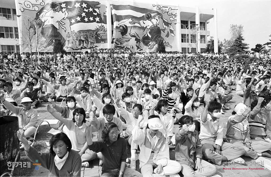 - 1988년 5월 17일 광주 전남대 5.18 광장에서 시민들과 학생들이 참석한 가운데 광주학살 진상규명 토론회가 열리고 있다.