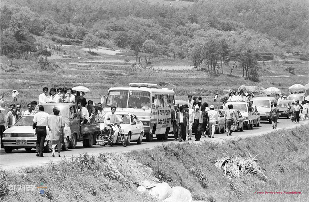 - 1988년.5월 18일 광주민중항쟁 8돌을 맞아 유족과 시민, 학생들이 망월동 묘소를 참배하기 위해 줄지어 가고 있다.