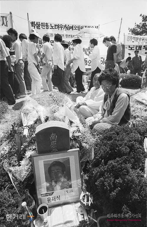 - 1988년.5월 18일전남도청에서 계엄군의 총에 맞아 숨진 윤재식씨의 어머니 신봉혜씨가 망월동묘지 아들의 묘지를 찾아 내아들을 살려내라며 울고 있다.