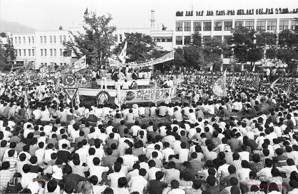 - 1988년 5월 18일 10만여명의 시민 학생들이 80년 당시 가장 처절했던 전남도청앞 광장에서 5월학살 원흉처단 및 진상규명을 위한 범국민대회를 갖고 있다.