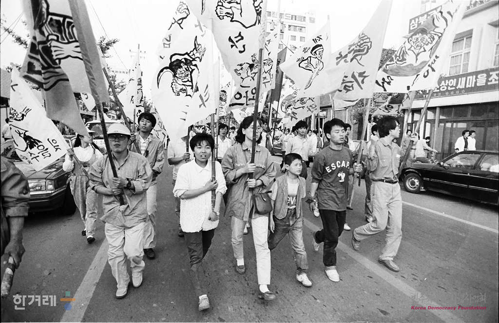 - 1988년 5월 18일 10만여명의 시민 학생들이 80년 당시 가장 처절했던 전남도청앞 광장에서 5월학살 원흉처단 및 진상규명을 위한 범국민대회를 마친 뒤 토론회를 있는 전남대로 향하고 있다.