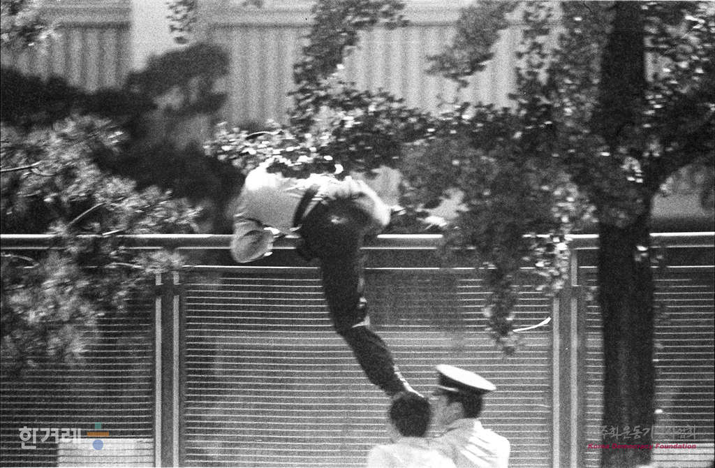 - 1988년 5월 20일. 오전 11시30분 서울 종로구 세종로 주한 미국대사관에 박용익씨 등 대학생 7명이 4개의 사제폭발물을 던지고 이중 5명이 대사관 안으로 들어가 시위를 벌이다 전원 경찰에 연행되고 있다.