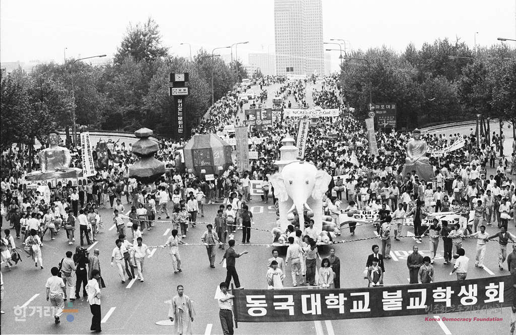 - 1988년 5월 21일 저녁7시 석가탄신 2532년 부처님 오신날 봉축 및 88서울 올림픽 성공기원 대법회를 마친 연등행렬이 마포대교를 지나 조계사로 향하고 있다.