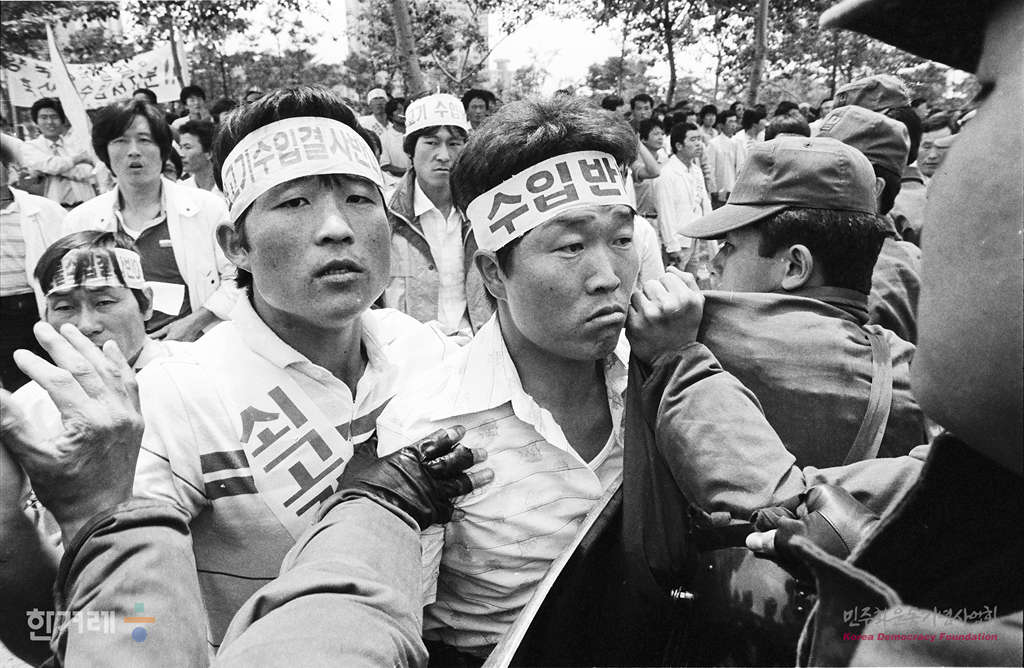 - 1988년 5월 26일.경찰의 원천봉쇄조치에도 불구하고 농수산물 수입을 반대하는 전국농민결의대회가 전국 각지에서 온 농민들과 주요 야당대표들이 동참한 가운데 서울 여의도 광장에서 열려 농축산물 수입반대 구호를 외치고 있다. 결의대회를 마친뒤 농민들은 국회의사당앞에서 시위를 벌이다 경찰에 강제해산 당했다.