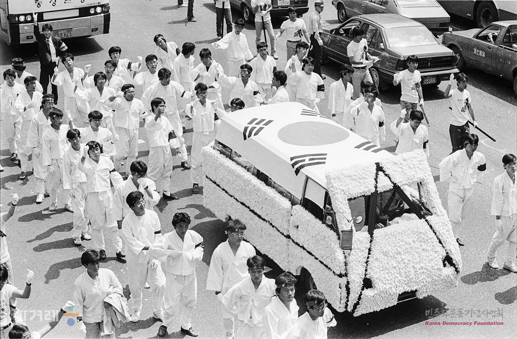 - 1988년 5월 30일 단국대 천안캠퍼스에서 광주는 살아있다 끝까지 투쟁하자는 구호를 외치며 분신해 26일 숨진 최덕수열사 장례식이 단국대 노천마당에서 열려 유가족 재야인사 학생 4천여명이 참석한 가운데 민주국민장으로 치러지고 있다. 유가족, 재야인사 학생 4천여명이 참석한 가운데 최씨의 유해는 서울역 단국대 천안캠퍼스 그의 모교인 정주 대영종합고 그리고 전남 도청앞 노제를 지내고 망월동 묘역에 안장됐다.