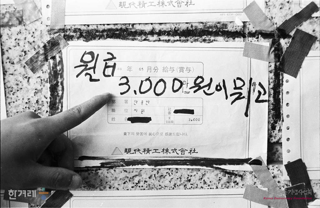 - 1988년 5월 31일 창원공단 현대정공 노동자들이 회사본관앞에서 총회를 열고 쟁의행위에 대한 찬반투표를 실시 임금협상이 타결될 때까지 파업을 계속할 것을 결의하고 있다.