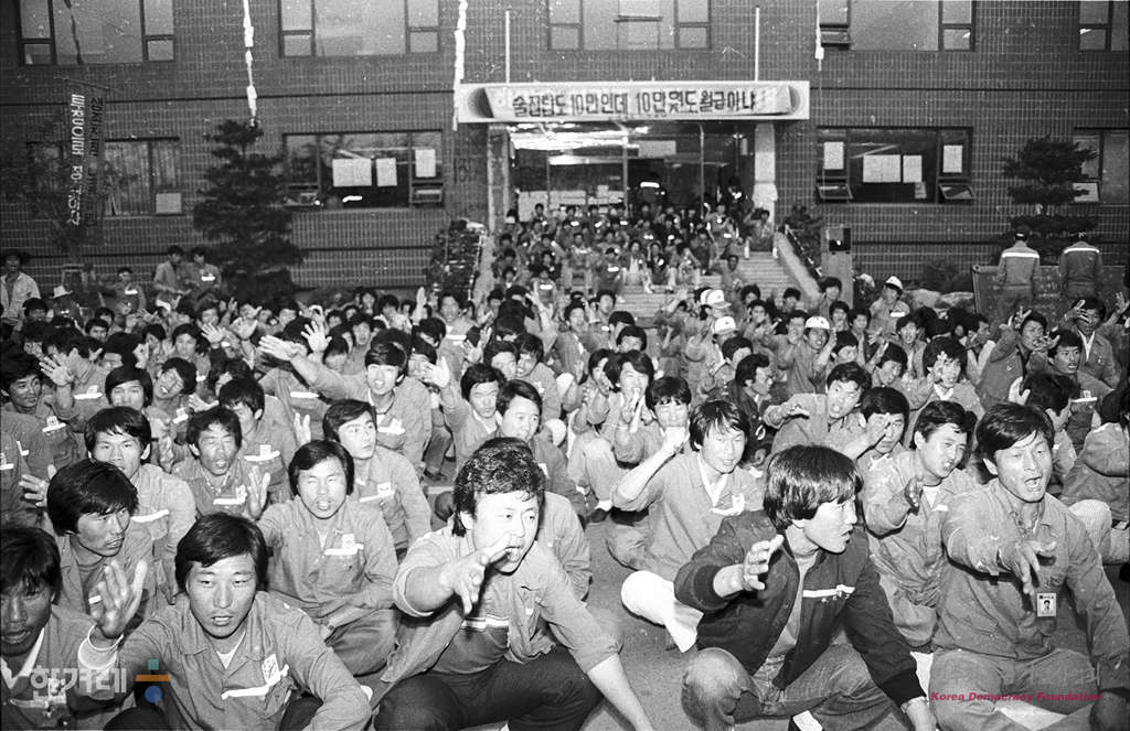 - 1988년 5월 31일 창원공단 현대정공 노동자들이 회사본관앞에서 총회를 열고 쟁의행위에 대한 찬반투표를 실시 임금협상이 타결될 때까지 파업을 계속할 것을 결의하고 있다.
