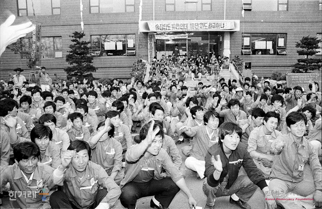 - 1988년 5월 31일 창원공단 현대정공 노동자들이 회사본관앞에서 총회를 열고 쟁의행위에 대한 찬반투표를 실시 임금협상이 타결될 때까지 파업을 계속할 것을 결의하고 있다.