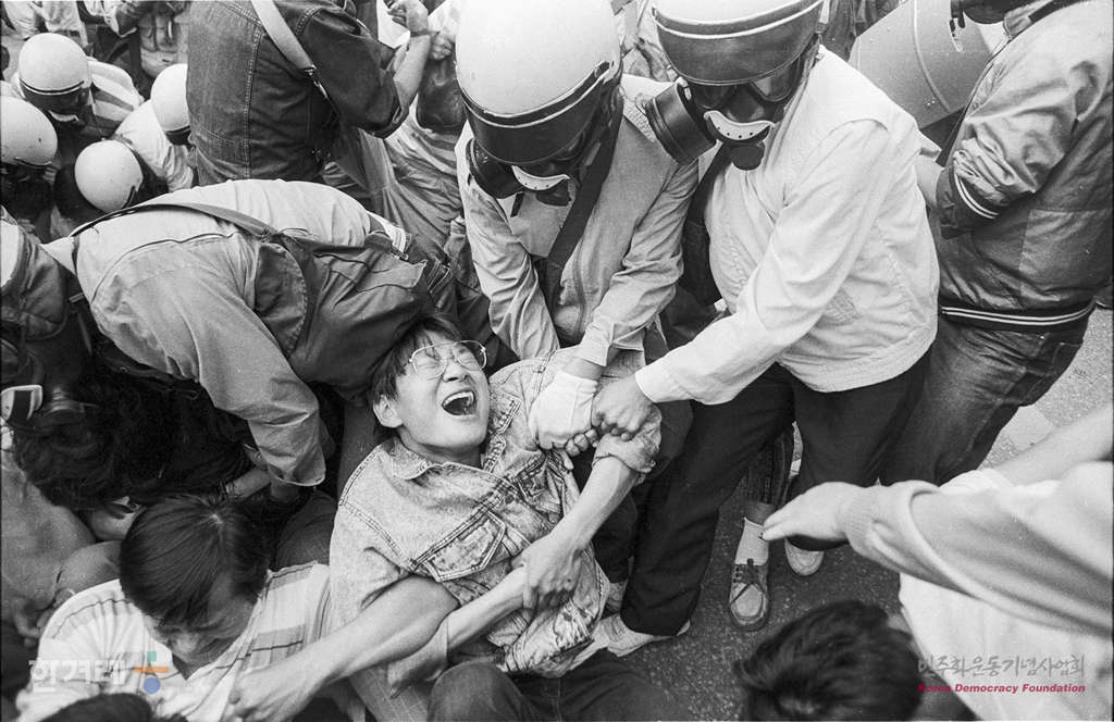 - 1988년 6월 9일 정부의 원천봉쇄 방침에 따른 강경대응에도 불구하고 6.10남북학생회담을 강행하기로 한 학생들은 각 대학별로 출정식을 가진 뒤 연세대로 합류했다. 연세대로 들어가는 학생들의 수가 불어나기 시작한 오후 4시 30분 경찰은 연세대로 통하는 길목을 차단하자 도로를 점거하고 시위를 벌이다 일부 학생들이 경찰에 연행되고 있다.