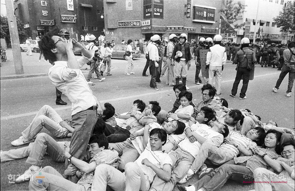 - 1988년 6월 9일 정부의 원천봉쇄 방침에 따른 강경대응에도 불구하고 6.10남북학생회담을 강행하기로 한 학생들은 각 대학별로 출정식을 가진 뒤 연세대로 합류했다. 연세대로 들어가는 학생들의 수가 불어나기 시작한 오후 4시 30분 경찰은 연세대로 통하는 길목을 차단하자 도로를 점거하고 시위를 벌이다 일부 학생들이 경찰에 연행되고 있다.