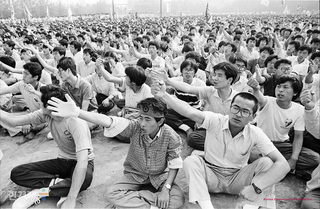 - 1988년 6월 9일 정부의 원천봉쇄 방침에 따른 강경대응에도 불구하고 6.10남북학생회담을 강행하기로 한 가운데 경찰의 봉쇄를 뚫고 들어온 대학생들은 연세대 대운동장에서 6.10회담 성사를 위한 백만학도 총귈기대회를 갖고 있다