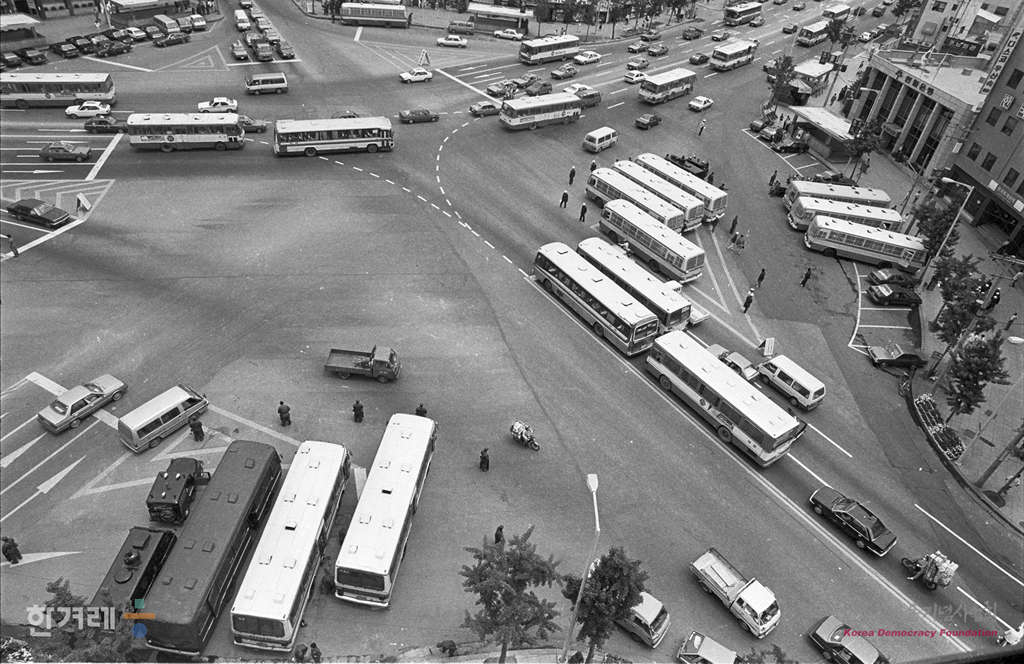 - 1988년 6월 9일 정부의 원천봉쇄 방침에 따른 강경대응에도 불구하고 6.10남북학생회담을 강행하기로 한 학생들은 각 대학별로 출정식을 가진 뒤 연세대로 합류했다. 연세대로 들어가는 학생들의 수가 불어나기 시작한 오후 4시 30분 경찰은 연세대로 통하는 길목을 차단하고 지나는 행인들을 검문검색을 하고 있다.