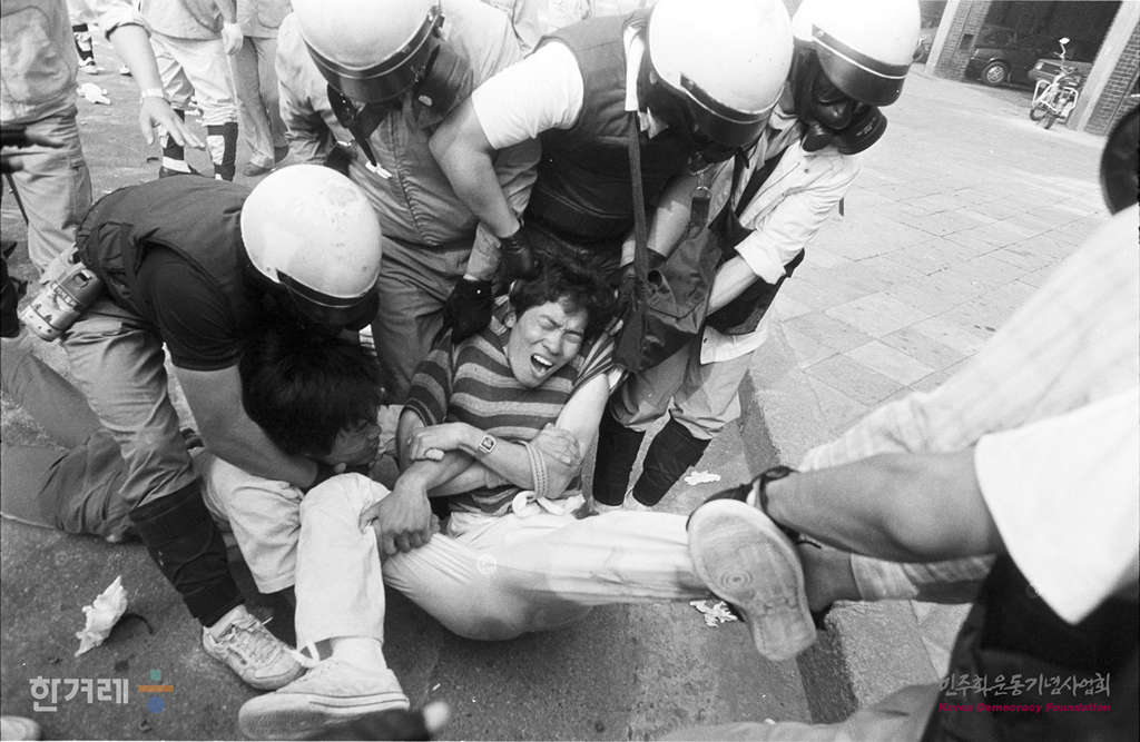 - 1988년 6월 10일 전국대학생 대표자협의회가 주도하는 6.10 남북 청년학생체육회담을 위한 학생들의 판문점행이 2만 6천여명의 경찰의 강력한 저지로 좌절된 가운데 연세대에 들어가지 못했던 학생들이 연세대 행진이 봉쇄되자 열차편으로 문산으로 갈 예정이었으나 경찰의 저지로 홍제동 네거리에서 판문점으로 도보행진을 벌이려다 경찰에 연행되고 있다.
