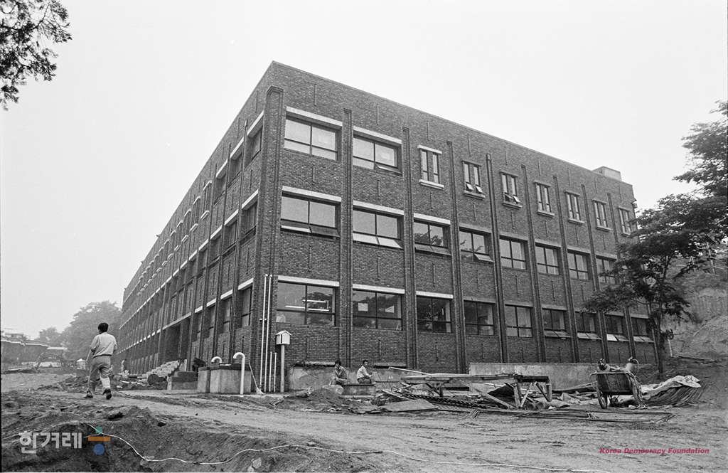 - 1988년 6월 10일 완공을 앞두고 있는 홍제동 대공수사단 건물. 언뜻 한 건물로 보이나 앞면이 A동이고 뒷면이 B동으로 A동과 B동은 2층만 통로로 연결돼 있다