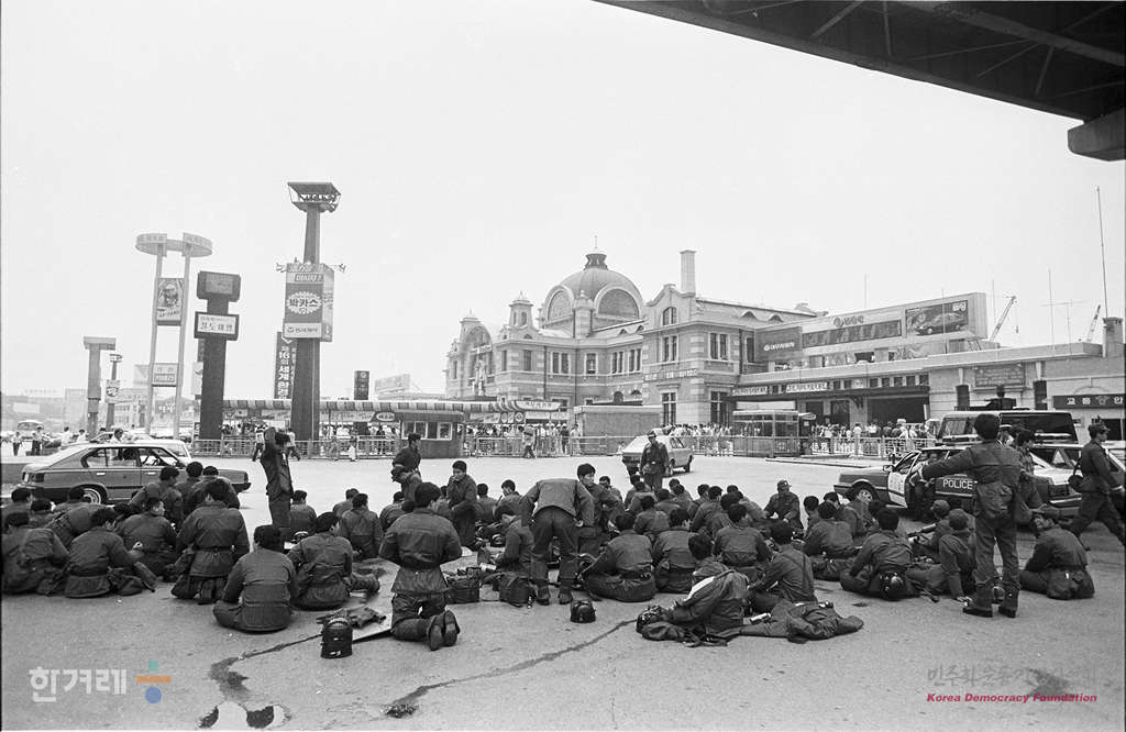 - 1988년 6월 10일 전국대학생 대표자협의회가 주도하는 6.10 남북 청년학생체육회담을 위한 학생들의 판문점행이 2만 6천여명의 경찰의 강력한 저지로 좌절된 가운데 연세대에 들어가지 못했던 학생들이 연세대 행진이 봉쇄되자 열차편으로 문산으로 갈 예정으로 알려지자 경찰들이 서울역인근을 봉쇄하고 있다