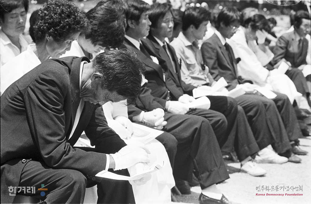 - 1988년 6월 12일 오후1시 ‘광주는 살아있다 끝까지 투쟁하라’등의 구호를 외치며 분, 6일 숨진 박래전씨의 장례식이 열린 경희궁 시민공원(옛 서울고 운동장)에서 유가족 재야인사 학생 시민 등 4천여명이 참석한 가운데 민주국민장이 치러지고 있다.