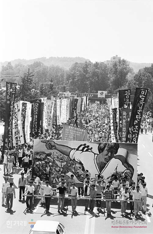 - 1988년 6월 12일 오후1시 ‘광주는 살아있다 끝까지 투쟁하라’등의 구호를 외치며 분, 6일 숨진 박래전씨의 장례식이 열린 경희궁 시민공원(옛 서울고 운동장)에서 유가족 재야인사 학생 시민 등 4천여명이 참석한 가운데 민주국민장이 마치고 거리행진을 하고 있다.