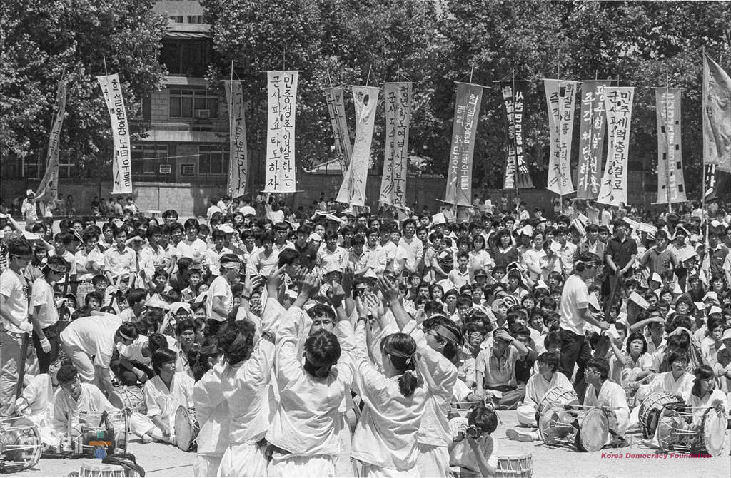 - 1988년 6월 12일 오후1시 ‘광주는 살아있다 끝까지 투쟁하라’등의 구호를 외치며 분, 6일 숨진 박래전씨의 장례식이 열린 경희궁 시민공원(옛 서울고 운동장)에서 유가족 재야인사 학생 시민 등 4천여명이 참석한 가운데 민주국민장이 치러지고 있다.