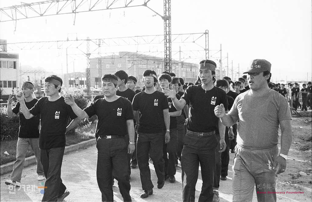 - 1988년 6월 16일 서울지하철공사 노조원들의 파업이 계속되는 가운데 노조원 2천여명이 군자 기지내 공작창 옥상에서 직제개편을 요구하며 농성을 벌이고 있다.