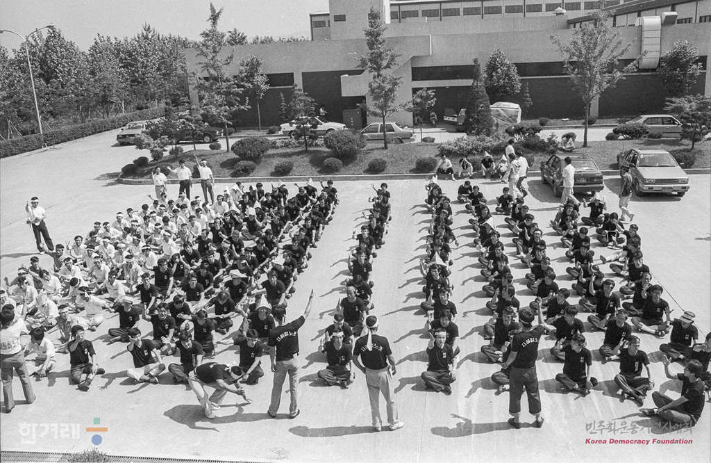 - 1988년 6월 16일 서울지하철공사 노조원들의 파업이 계속되는 가운데 노조원 2천여명이 군자 기지에서 직제개편을 요구하며 농성을 벌이고 있다.
