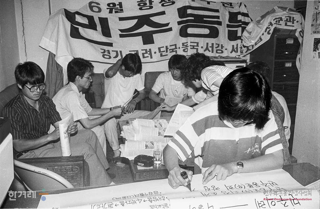 - 1988년 6월.18일 13개 대학 졸업한 학생들의 ‘민주동문 유월대동제’를 앞두고 연세 민주동문회 회원들이 동문회 사무실에서 준비작업에 여념이 없다.