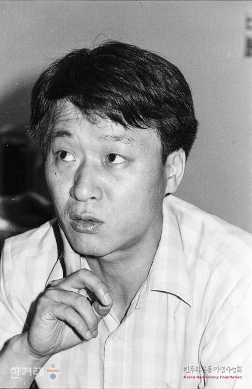 - 1988년 6월 28일 민중가요 ‘아침이슬’의 작고가로 유명한 김민기씨가 70년대 독집음반 <김민기>와 <공장의불빛> 두장의 음반에 대한 심의를 공륜에 신청하며 인터뷰를 하고 있다.
