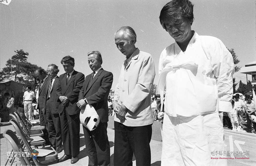 - 1988년 7월. 3일. 통일염원 범국민 평화대행진 둘째날 임진각에서 각계인사와 시민 청년 5백여명이 참석한 가운데 통일기원제를 하고 있다.