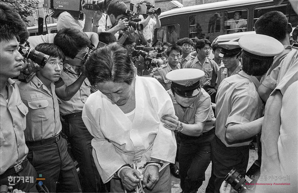 - 1988년 7월 18일 전경환씨를 비롯해 새마을운동 중앙본부 비리사건 피고인들이 특정경제범죄 가중처벌법 위한 등 사건 첫 공판을 받기 위해 대법정으로 들어서고 있다.