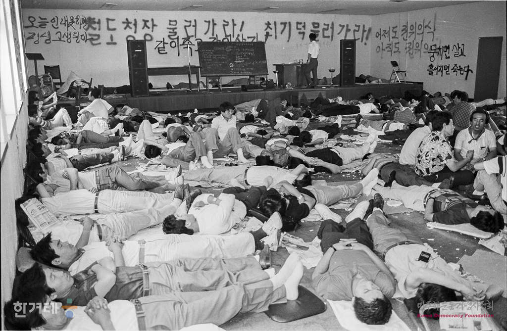- 1988년 7월 26일 철도청소속 기관사와 기관조사들이 근로조건 개선과 수당 인상 등 7개 항의 요구조건을 내걸고 서울 용산 철도노조 사무실에서 농성을 벌이고 있다. 농성장 밖에는 경찰이 출입자의 제한하고 있다.