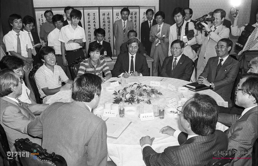 - 1988년 8월 2일 8.15 판문점 남북학생회담을 강행하려는 전국대학생대표자협의회쪽과 이를 강력히 막기로 한 정부당국 사이에 팽팽한 긴장이 고조되는 가운데 국회에서 전국주요 대학교 학생대표 및 교수들을 초청 통일과 남북문제에 관한 회의를 하고 있다.