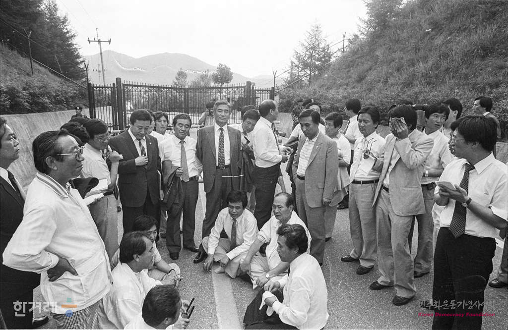 - 1988월 8월 12일 청남대에 도착한 국회 5공비리조사특위 야당쪽 의원들이 청남대에 도착했으나 입구에서 출입을 차단당해 조사활동을 못한 채 굳게 닫힌 정문앞에서 항의 농성을 하고 있다.