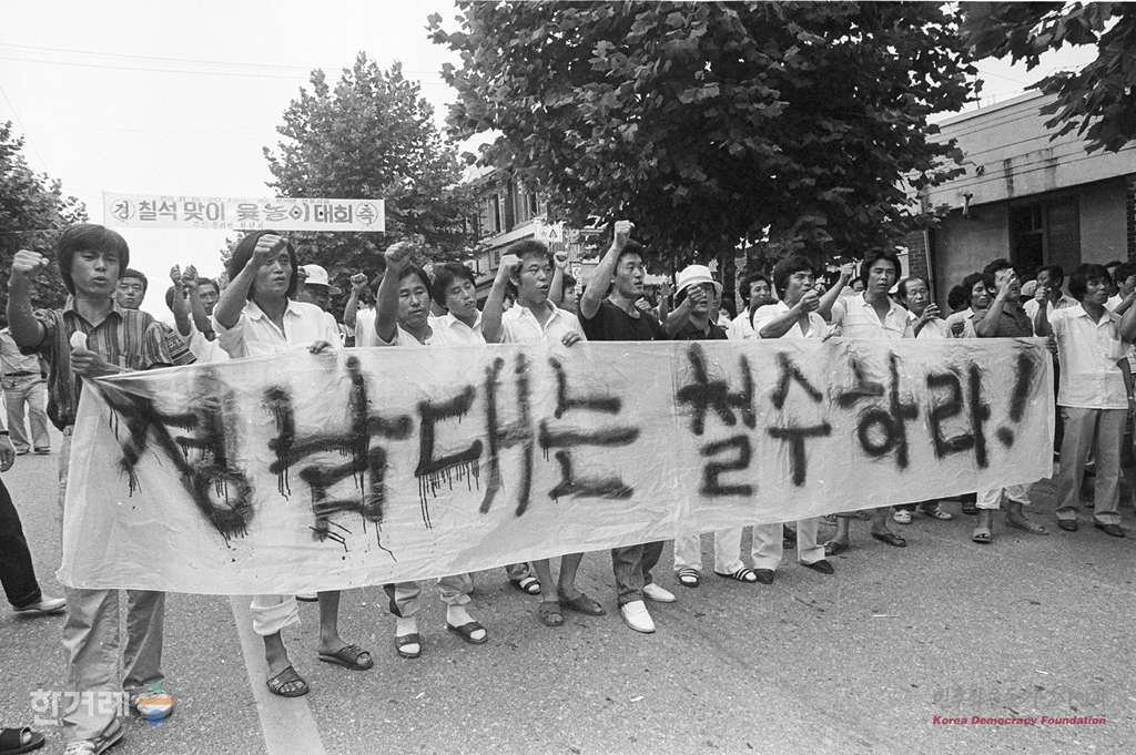 - 생산자 및 기증자가 ‘박용수’인 사진의 사용은 구매신청을 클릭하여 직접 사진 구매 신청을 하실 수 있습니다. 생산자 및 기증자가 ‘경향신문사’인 사진의 사용은 경향신문사 담당자(02-3701-1635)를 통해 구매하실 수 있습니다. 그 외의 생산자 및 기증자는 민주화운동기념사업회 사료관 담당자( hyunchaek@kdemo.or.kr / 02-6440-8961 )에 문의바랍니다.