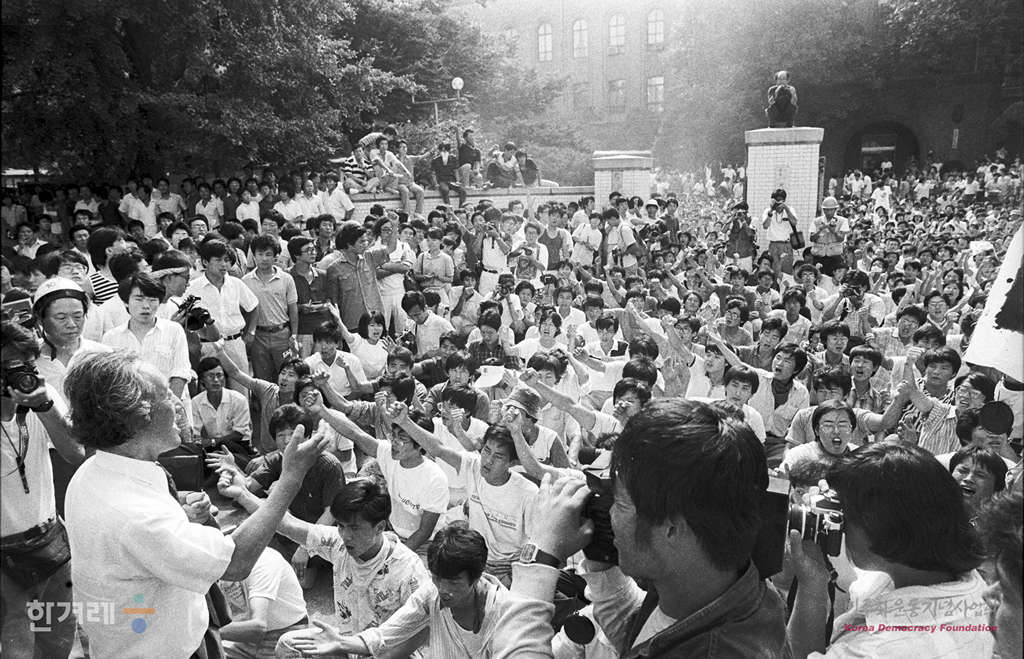 - 1988년 8월 14일 오후4시 전대협소속 대학생들과 재야단체 인사들과 시민들이 서울 대학로에서 평화통일염원대동제를 갖으려다 경찰의 봉쇄에 막혀 서울의대입구에서 항의집회를 갖고 있다.