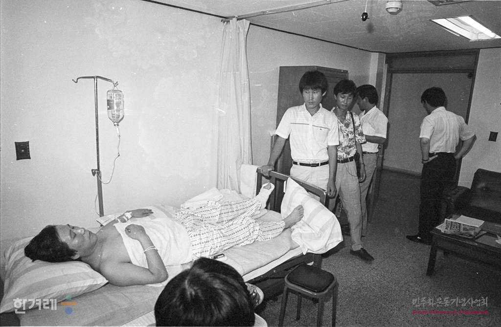 - 1988년 8월 25일 육군범죄수사단 소속 수사요원이 서울 강남구 신사동 영동병원에서 오홍근씨로부터 피해자 진술을 받다 취재사진을 찍자 카메라를 피해 의자에서 일어서고 있다.