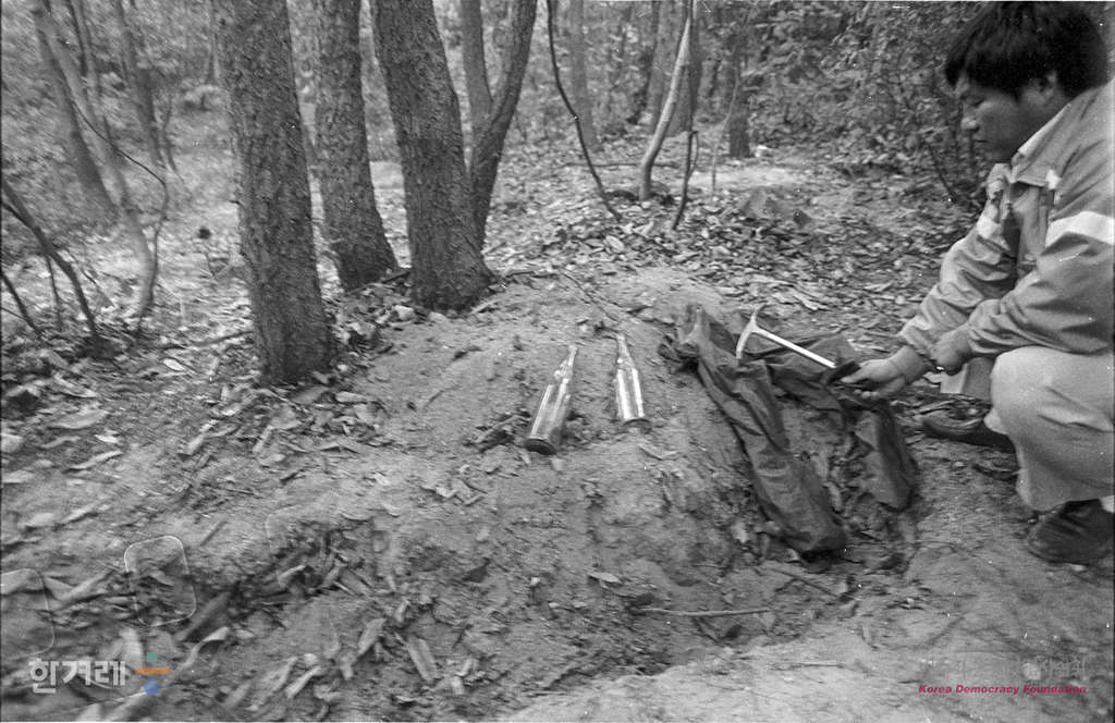 - 1988년 10월 12일. 지강헌을 비롯한 탈주범들이 지난 4월 특가법 위반으로 구속되기 직전 밀수범에게서 강탈해 서울 도봉구 우이동 산기슭에 미국돈 6만 달러와 귀금속을 숨겨둔 도봉산 기스륵에 보물을 찾기 위해 파놓은 20여개의 구덩이 주변에는 소주병과 등산용 단장 손잡이 등이 흩어져 있다.