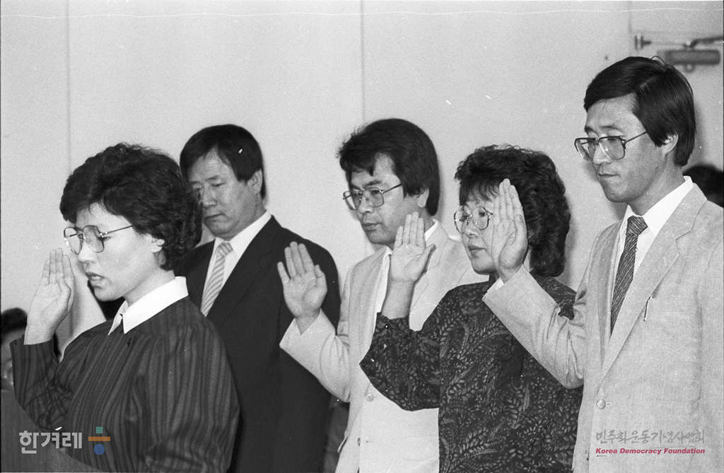 - 1988년 10월 6일 서울시교위 감사에서 전두환 전 대통령 부인 이순자씨가 회장으로 있는 새세대육영회의 설립경위 및 기금모습과정과 운영사항의 의혹이 불거진 새세대육영회 간부들이 국회 문공위 국정감사에 나와 증인선서를 하고 있다. 이날 증인으로 소환된 회장 이순자씨는 불참했다.