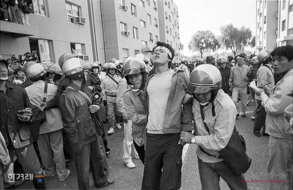 - 1988년 10월 6일 서울지역총학생회연합 소속 8개대 대학생 23명이 서울 영등포구 여의도동 국회의사당옆 의원회관 3동 406호 민정당 정호용의원 사무실에 들어가 5공비리 척결과 광주학살 진상규명을 요구하며 농성을 벌이다 경찰에 연행되고 있다.